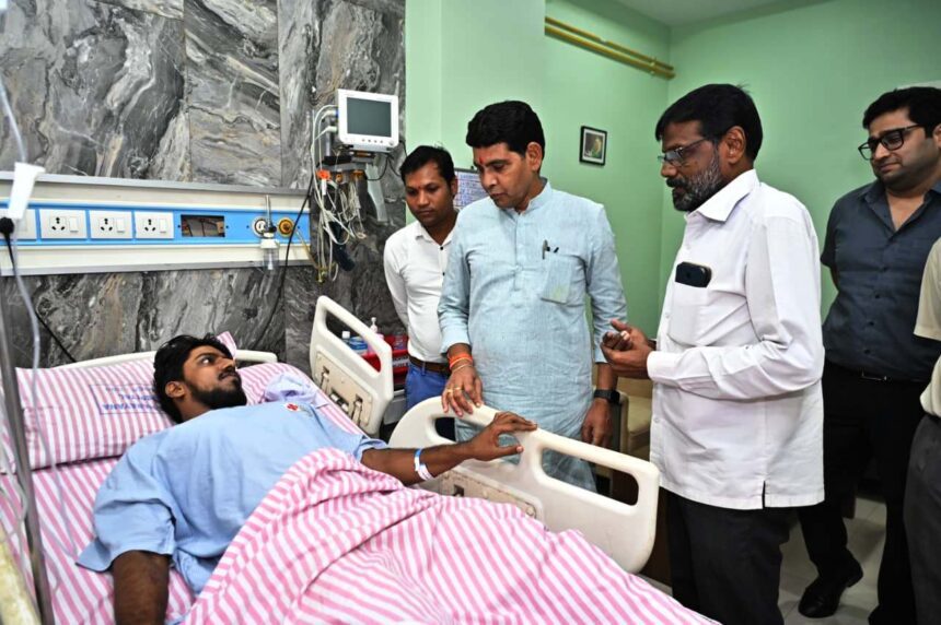 रायपुर, 08 सितंबर 2025 I प्रदेश के राजस्व मंत्री टंकराम वर्मा अस्पताल पहुँचकर साहू परिवार से मुलाकात की और घायल युवक का हालचाल जाना। उन्होंने घायल युवक के शीघ्र स्वास्थ्य लाभ की कामना करते हुए परिवार को हरसंभव सहयोग का आश्वासन दिया।
