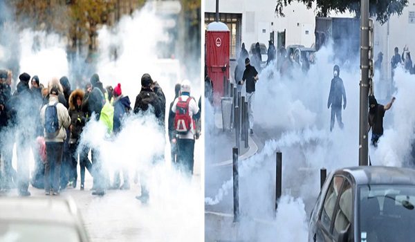 इससे नाराज़ लोगों ने पेरिस और अन्य शहरों में प्रदर्शन शुरू कर दिया। भीड़ ने जगह-जगह सड़कें जाम कीं, कचरे के डिब्बों और वाहनों को आग लगा दी। पश्चिमी शहर रेन (Rennes) में तो एक बस को भी जला दिया गया। दक्षिण-पश्चिम इलाके में पावर लाइन तोड़ने से ट्रेनें ठप हो गईं।
