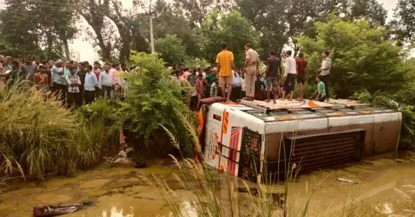 कानपुर,11 सितम्बर । उत्तर प्रदेश के कानपुर में भीतरगांव क्षेत्र के साढ़-जहानाबाद मार्ग पर एक दिल दहलाने वाला सड़क हादसा हुआ। स्कूली बच्चों से भरी एक निजी स्कूल की बस ने बाइक सवार पिता, पुत्र और पुत्री को कुचल दिया और फिर अनियंत्रित होकर पानी भरी खंती में पलट गई। इस भीषण हादसे में पिता और पुत्र की मौके पर ही मौत हो गई, जबकि बेटी गंभीर रूप से घायल हो गई।