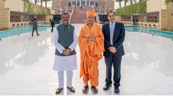 केंद्रीय मंत्री प्रधान ने कहा कि यह मंदिर भारत के शाश्वत मूल्यों सौहार्द, शांति और आध्यात्मिकता का वैश्विक प्रतीक है। उन्होंने इसे न केवल अद्भुत शिल्पकला का नमूना बताया बल्कि असंख्य स्वयंसेवकों और भक्तों की सामूहिक भक्ति व त्याग का प्रतीक भी माना।