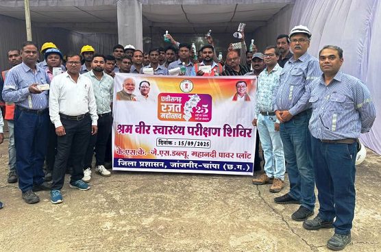 जांजगीर-चांपा,15 सितंबर (वेदांत समाचार) : कलेक्टर जन्मेजय महोबे के निर्देशन में रजत जयंती महोत्सव सप्ताह के अवसर पर श्रम विभाग द्वारा के.एस. के. जे.एस. डब्ल्यू महानदी पावर प्लांट अकलतरा में श्रम वीर स्वास्थ्य परीक्षण शिविर का आयोजन किया गया।