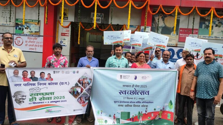 उक्त बातें महापौर श्रीमती राजपूत ने सुलभ इंटरनेशनल नगर पालिक निगम कोरबा के द्वारा आयोजित स्वच्छोत्सव कार्यक्रम में कही। यहॉं उल्लेखनीय है कि छत्तीसगढ़ शासन से प्राप्त दिशा निर्देशों के अनुरूप भारत सरकार की महत्वपूर्ण योजना स्वच्छ भारत मिशन – शहरी 2.0 के अंतर्गत राज्य के अन्य सभी नगरीय निकायों के साथ-साथ नगर पालिक निगम कोरबा क्षेत्र में भी 17 सितम्बर से 02 अक्टूबर तक ’’ स्वच्छता ही सेवा अभियान -2025 ’’ का आयोजन किया जा रहा है। इसी कड़ी में सुलभ इंटरनेशनल सोशल सर्विस आर्गनाईजेशन नगर पालिक निगम कोरबा के द्वारा विवेकानंद उद्यान के समीप स्थित सार्वजनिक शौचालय परिसर में स्वच्छोत्सव का कार्यक्रम आयोजित किया गया, कार्यक्रम की मुख्य अतिथि के रूप में महापौर श्रीमती संजूदेवी राजपूत ने अपनी गरिमामयी उपस्थिति प्रदान करते हुए कार्यक्रम का शुभारंभ कराया।