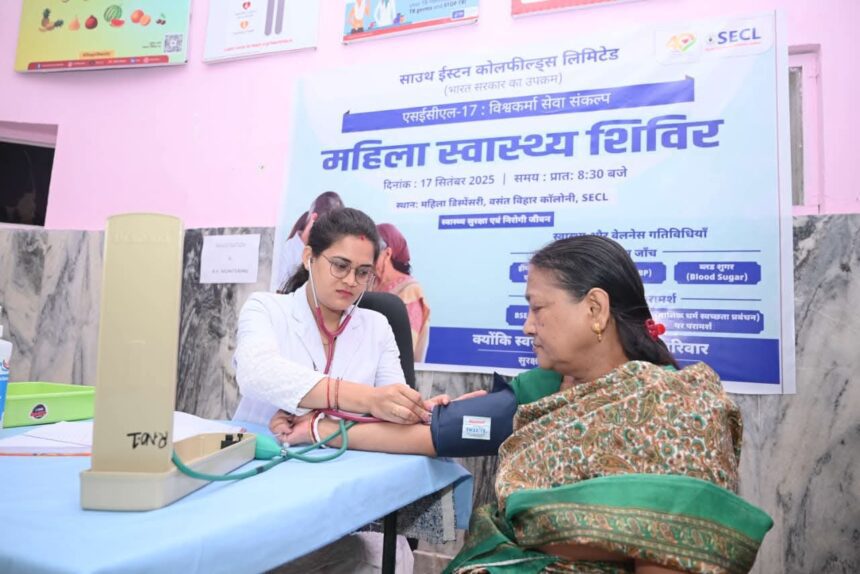 बिलासपुर, 19 सितम्बर (वेदांत समाचार)। एसईसीएल मुख्यालय, वसंत विहार कॉलोनी में SECL-17 “विश्वकर्मा सेवा संकल्प” के अंतर्गत महिला स्वास्थ्य शिविर का सफल आयोजन किया गया। इस शिविर का उद्देश्य महिलाओं के स्वास्थ्य और कल्याण को बढ़ावा देना था।