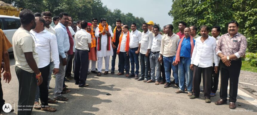 सुरेन्द्र ठाकुर/कोरबा,पाली, 20 सितम्बर (वेदांत समाचार)। भारतीय जनता पार्टी किसान मोर्चा के प्रदेश अध्यक्ष आलोक सिंह ठाकुर का पाली पोड़ी लाफा मंडल के प्रथम आगमन पर ऐतिहासिक एवं भव्य स्वागत किया गया। पाली नेशनल हाइवे पर सैकड़ों कार्यकर्ताओं ने पुष्प वर्षा, फूल-मालाओं और आतिशबाजी के बीच उनका स्वागत कर अभिनंदन किया। चारों ओर उत्साह और जयघोष के बीच वातावरण गरिमामय एवं उल्लासपूर्ण बन गया।