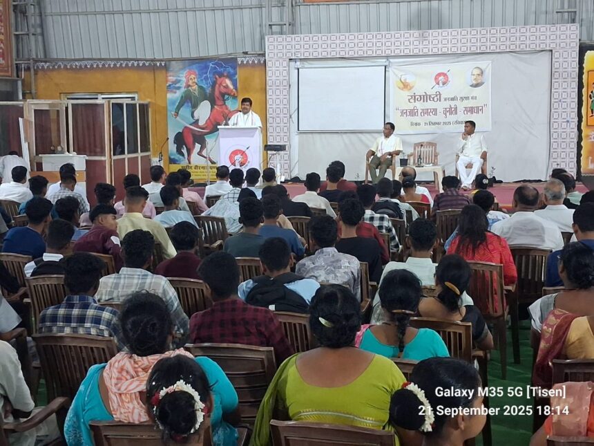 रायपुर, 21 सितम्बर (वेदांत समाचार)। वनवासी विकास समिति कल्याण आश्रम रायपुर महानगर में रविवार को जनजाति सुरक्षा मंच द्वारा “जनजाति समस्या, चुनौती और समाधान” विषय पर संगोष्ठी आयोजित की गई। कार्यक्रम में मुख्य अतिथि के. सी. पैकरा (सेवानिवृत्त संयुक्त सचिव, कृषि विभाग, छत्तीसगढ़ शासन), मुख्य वक्ता प्रकाश उइके (पूर्व न्यायाधीश एवं विशेष सलाहकार, राष्ट्रीय अनुसूचित जनजाति आयोग, नई दिल्ली) और अध्यक्ष रवि भगत (पूर्व शासकीय अधिवक्ता, छत्तीसगढ़ उच्च न्यायालय) मौजूद थे।
