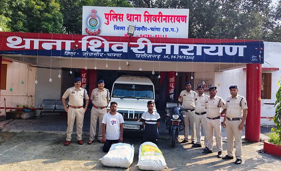 थाना शिवरीनारायण पुलिस को देर रात विश्वसनीय मुखबिर से सूचना प्राप्त हुई कि महासमुंद जिले से बोलेरो वाहन में भारी मात्रा में गांजा लेकर बिलासपुर की ओर भेजा जा रहा है। सूचना पर पुलिस अधीक्षक विजय कुमार पाण्डेय (IPS) के निर्देशन में तथा अतिरिक्त पुलिस अधीक्षक उमेश कुमार कश्यप के कुशल मार्गदर्शन तथा SDOP चांपा यदुमणि सिदार के नेतृत्व में थाना प्रभारी शिवरीनारायण द्वारा विशेष टीम गठित कर नेहरू बालोद्यान, शिवरीनारायण के पास घेराबंदी की गई। पुलिस द्वारा रेड कार्रवाई के दौरान बोलेरो वाहन को पायलटिंग कर रही मोटरसाइकल को रोका गया और बोलेरो वाहन को भी रोका गया। दोनों वाहनों के व्यक्तियों को हिरासत में लिया गया।