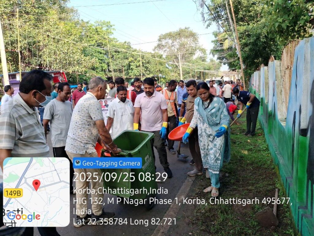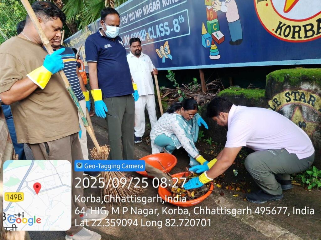 यहॉं उल्लेखनीय है कि भारत सरकार के महत्वपूर्ण मिशन ’’ स्वच्छ भारत मिशन -शहरी 2.0 ’’ के अंतर्गत शासन के दिशा निर्देशों के अनुरूप नगर पालिक निगम कोरबा द्वारा 17 सितम्बर से 02 अक्टूबर तक स्वच्छता ही सेवा – 2025 अभियान का सफल संचालन महापौर श्रीमती संजूदेवी राजपूत व आयुक्त आशुतोष पाण्डेय के मार्गदर्शन में किया जा रहा है तथा प्रतिदिन स्वच्छता व साफ-सफाई से जुडे़ विविध कार्यक्रम सम्पन्न कराया जाकर आमजन में स्वच्छता व साफ-सफाई के प्रति जागरूकता लाने का कार्य हो रहा है। इसी कड़ी में आज कोरबा शहर के घंटाघर से रविशंकर नगर की ओर जाने वाले मुख्य मार्ग पर उद्यान में स्वच्छता अभियान चलाया गया।