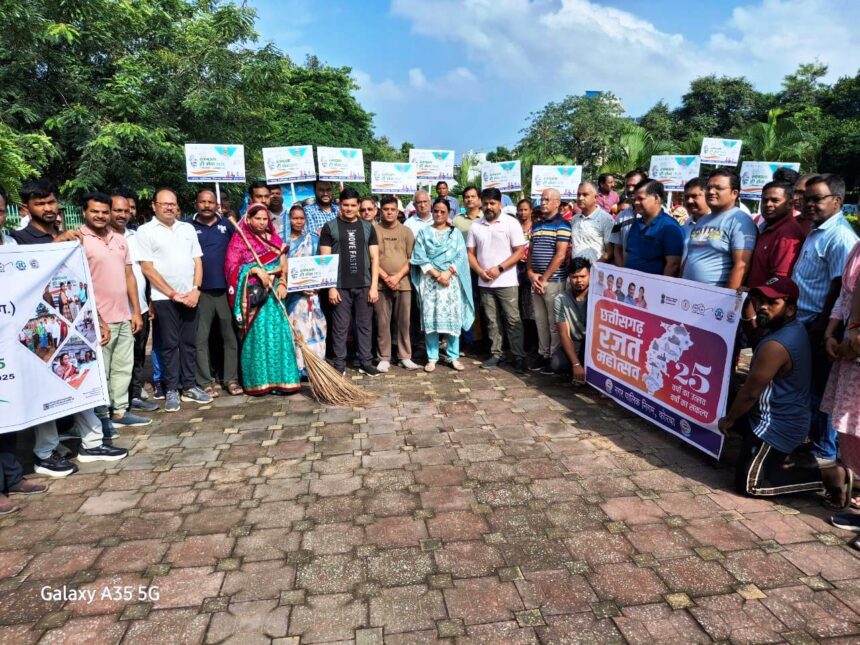 कोरबा 25 सितम्बर 2025 – स्वच्छता ही सेवा-2025 अभियान अंतर्गत आज घंटाघर से रविशंकर नगर की ओर जाने वाले मुख्य मार्ग एवं वहॉं पर स्थित उद्यान में नगर पालिक निगम कोरबा द्वारा स्वच्छता अभियान संचालित किया गया। महापौर श्रीमती संजूदेवी राजपूत आयुक्त आशुतोष पाण्डेय, सभापति नूतन सिंह ठाकुर सहित पार्षदों, जनप्रतिनिधियों व अधिकारी कर्मचारियों ने स्वच्छता हेतु श्रमदान किया तथा साफ-सफाई का कार्य में अपनी सहभागिता दी।