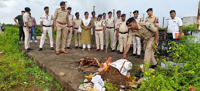 एमसीबी,27 सितम्बर (वेदांत समाचार): पुलिस महानिरीक्षक सरगुजा रेंज सरगुजा के निर्देशानुसार आज मनेन्द्रगढ़-चिरमिरी-भरतपुर जिले में नशीले पदार्थों के खिलाफ बड़ी कार्यवाही की गई। जिले के थाना खड़गवां, चिरमिरी, झगराखाण्ड, मनेन्द्रगढ़, केल्हारी एवं जनकपुर में वर्ष 2021 से 2025 तक नारकोटिक्स एक्ट के तहत दर्ज कुल 16 प्रकरणों में जप्त मादक पदार्थ गांजा एवं नशीली इंजेक्शनों का विधिवत नष्टीकरण किया गया। इस कार्यवाही के अंतर्गत 7 किलो 430 ग्राम गांजा जिसकी बाजार कीमत 80 हजार 500 रुपये आंकी गई है.