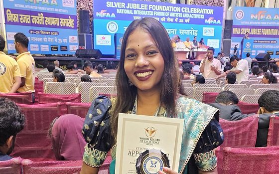 मोहला-मानपुर-अंबागढ़ ,28 सितम्बर (वेदांत समाचार) । चौकी जिले के ग्राम पानाबरस की बेटी सनाया मानिकपुरी ने एक बार फिर छत्तीसगढ़ का नाम रोशन किया है। उन्हें अंतरराष्ट्रीय संस्था नेशनल इंटीग्रेटेड फॉर एक्टिविस्ट एंड आर्टिस्ट द्वारा नई दिल्ली स्थित भारत मंडपम में राष्ट्रीय स्तर का सम्मान एवं अवार्ड प्रदान किया गया। यह सम्मान उन्हें छत्तीसगढ़ी कला, गीत-संगीत और परिधान के प्रचार-प्रसार में उल्लेखनीय योगदान के लिए मिला।
