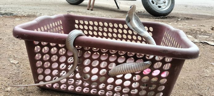 कोरबा ,28 सितम्बर (वेदांत समाचार)– एक दुकानदार उस समय डर से कांप उठा जब एक कोबरा फन फैलाए टोकरी में दिखाई दिया वही आवाज करने लगा, दुकानदार को यह दृश्य सामान्य लगा पर जब हिम्मत कर उस प्लास्टिक के बास्केट को दुकान से बाहर निकाला तो देखा वो कोबरा (नाग) उसमें पूरी तरफ फंसा हुआ था जो आसानी से नहीं निकल सकता था इस बात को समझते देर नहीं लगी फिर आखिकार इसकी सूचना नोवा नेचर संस्था के जितेंद्र सारथी को दिया गया