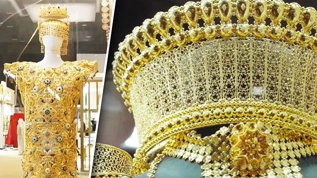 दुबई ड्रेस चार हिस्सों से मिलकर बनी है. इसमें सबसे खास है सोने का क्राउन, जो 398 ग्राम का है. इसके साथ एक भारी-भरकम नेकलेस है, जो 8.8 किलो से भी ज्यादा वजन का है. इसके अलावा, ड्रेस के हिस्से में सुनहरे ईयररिंग्स हैं जिनका वजन 134 ग्राम है और कमर पर पहना जाने वाला हियार है, जो 738 ग्राम भारी है. यह सब मिलकर इस ड्रेस को दुनिया की सबसे भारी और सबसे महंगी सोने की ड्रेस बनाते हैं.