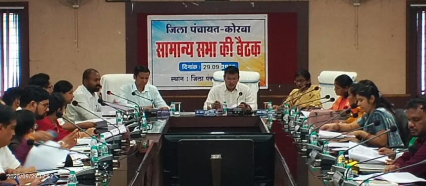 कोरबा/29 सितंबर 2025 (वेदांत समाचार)।छत्तीसगढ़ पंचायतराज अधिनियम 1993 की धारा 44 के तहत जिला पंचायत कोरबा की सामान्य सभा बैठक आज जिला पंचायत सभा कक्ष में संपन्न हुई। बैठक की अध्यक्षता जिला पंचायत अध्यक्ष डॉ. पवन कुमार सिंह ने की तथा मुख्य कार्यपालन अधिकारी दिनेश कुमार नाग की उपस्थिति रही।