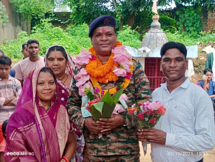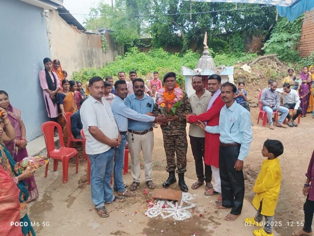 सक्ती, 02 अक्टूबर (वेदांत समाचार)। 22 साल देश सेवा कर वापस लौटे जवान का गांव के लोगों व दोस्तों ने डीजे लेकर रेलवे स्टेशन में स्वागत व सम्मान किया। इस दौरान पूरे क्षेत्र में खुशी का माहौल था, लोगों ने पटाखे फोड़े और गाजे-बाजे के साथ जवान का स्वागत किया। सक्ति से लगे सिरली गांव के फुलेश्वर सिदार, जिन्होंने भारतीय सेना में रहकर 22 वर्ष तक राष्ट्र रक्षा करने के बाद सेवानिवृत्ति ली, उनका गांव के लोगों ने तथा दोस्तों व परिवारजनों ने भव्य स्वागत किया।