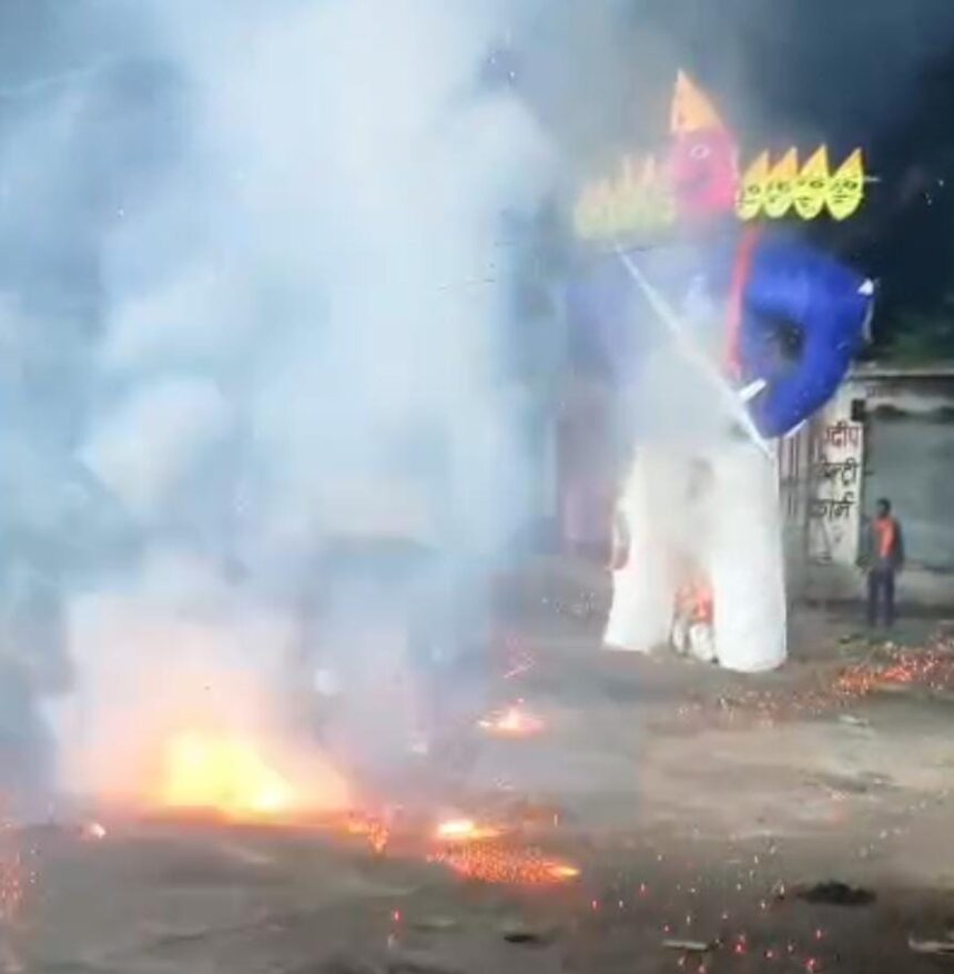 हरदीबाजार 03 अक्टूबर – माँ दुर्गा उत्सव समिति बस स्टैंड हरदीबाजार के द्वारा बस स्टैंड दुर्गा पंडाल के बगल में दशहरा उत्सव मनाया गया।जिसमें आचार्य हीरालाल पांडेय जी के द्वारा रावण दहन के पूर्व पूजा पाठ किया गया। रावण दहन के मुख्य अतिथि समाजसेवी व भाजपा नेता यशवंत राठौर व यदुराज राठौर रहे, साथ में मुकेश जायसवाल भी उपस्थित रहे। बस स्टैंड के इस रावण दहन में हरदीबाजार व आसपास क्षेत्र के लोग काफी संख्या में पहुंचकर रावण दहन में शामिल हुये। समिति के द्वारा पटाखों के साथ आतिशबाजी भी की गई। बस स्टैंड हरदीबाजार नवरात्रि व दशहरा का मुख्य केंद्र बनते जा रहा है समिति के द्वारा प्रत्येक 9 दिन अलग-अलग कार्यक्रम समिति के द्वारा कराया जाता है और दसवें दिन समिति के द्वारा दशहरा उत्सव मनाया जाता है। इस अवसर पर मां दुर्गा उत्सव समिति बस स्टैंड हरदीबाजार के अध्यक्ष निलेन्द्र राठौर,सचिव विनय चंद्राकर, कोषाध्यक्ष नवनीत गुप्ता, आचार्य हीरालाल पांडेय, सुरेंद्र राठौर, सुर्या यादव,दुर्गेश डिक्सेना, पंकज धुरवा, बजरंग यादव, नरेंद्र अहीर,तरुण डिक्सेना, रमेश राठौर,जयप्रकाश राठौर, वीरेंद्र पटेल जी,डॉ गणेश प्रभुवा,देवेश शर्मा,राजू गुप्ता,बंटी राठौर, पंडा रमेश दास महंत,आनंद सिंह, महावीर डिक्सेना,हेम साहू, रामलाल प्रजापति,यक्ष आदित्य, राजाराम राठौर, विनोद उपाध्याय,किशोर यादव, कांति राठौर,राजू राठौर,राहुल यादव,रमेश प्रजापति,आकाश जायसवाल,समीर जायसवाल,धनंजय धुरवा, बॉबी राठौर, संजय राठौर,चंदराम यादव, आसुतोष बंजारे, बबला मरकाम, विकास कंवर, प्रताप कंवर, परमेश्वर निर्मलकर,विकास राठौर,प्रवीण गुरुद्वान,राहूल डिक्सेना, विक्की यादव, राहुल राठौर, शिवम जायसवाल, शिवा राठौर, वैभव राठौर,राहुल प्रजापति,, बाबा यादव के अलावा समिति के सदस्य अधिक संख्या में उपस्थित थे।