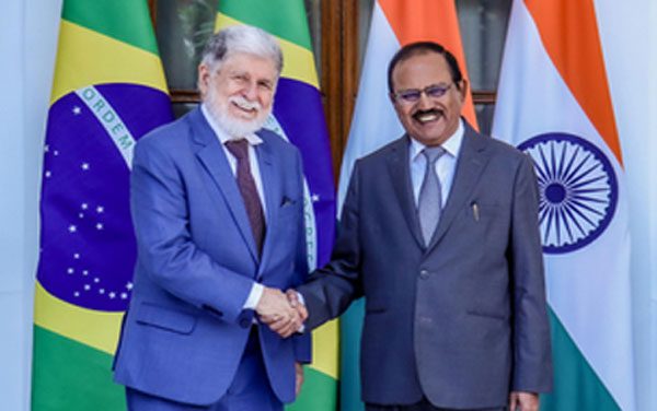 नई दिल्ली 04 अक्टूबर । भारत के राष्ट्रीय सुरक्षा सलाहकार (एनएसए) अजीत डोवाल ने नई दिल्ली में छठे भारत-ब्राजील रणनीतिक संवाद के लिए राष्ट्रपति लुईज इनासियो लूला दा सिल्वा के विशेष सलाहकार और राजदूत सेल्सो लुइस नून्स अमोरिम से मुलाकात की। दोनों देश अमेरिकी टैरिफ के प्रभावों को कम करने के लिए नए व्यापारिक रास्ते तलाश रहे हैं। शुक्रवार को हुई इस मुलाकात के दौरान राजदूत अमोरिम के साथ ब्राजील के वरिष्ठ सरकारी अधिकारियों और सलाहकारों का एक प्रतिनिधिमंडल भी मौजूद था। विदेश मंत्रालय (एमईए) की ओर से साझा जानकारी के अनुसार यह मुलाकात जुलाई 2025 में भारत के प्रधानमंत्री नरेंद्र मोदी की ब्राजील की राजकीय यात्रा के दौरान सहयोग के पांच स्तंभों के अंतर्गत चिन्हित मुद्दों पर आगे की बातचीत का एक अवसर था।