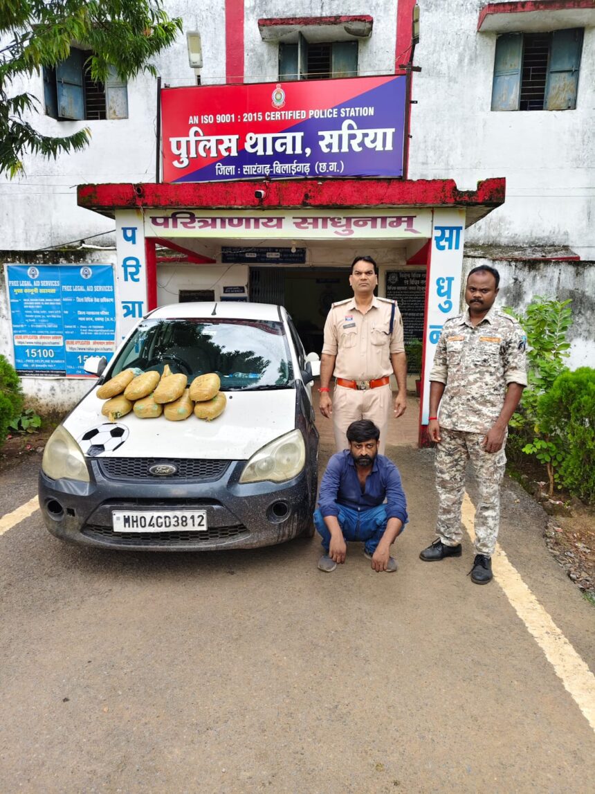 दिनांक 04 अक्टूबर 2025 को सरिया पुलिस को मुखबिर से सूचना मिली कि फोर्ड क्लासिक कार (क्रमांक MH 04 GD 3812) में एक व्यक्ति उड़ीसा से गांजा लेकर सरिया की ओर आ रहा है।