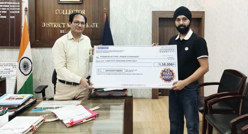 विनीत चौहान,बिलासपुर,06 अक्टूबर 2025। नवरात्रि पर्व पर फाउंडेशन क्रिकेट एकेडमी खेल में रास डांडिया आयोजन समिति ने पंजाब के बाढ़ पीड़ितों की मदद करने 1 लाख 50 हजार की सहायता राशि जिला प्रशासन को दिया है। फाउंडेशन क्रिकेट एकेडमी के चेयरमैन प्रिंस भाटिया ने डेढ़ लाख का चेक आज कलेक्टर संजय अग्रवाल को सौंपा है।