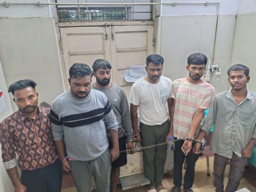 जयदीप साहू उम्र 29 वर्ष संतोषी चौक जामुल , दीपक गुप्ता उम्र 35 वर्ष न्यू खुर्सीपार , सागर जायसवाल उम्र 27 वर्ष हाउसिंग बोर्ड थाना जामुल , अजय शर्मा उम्र 31 वर्ष कुरूद थाना जामुल , आकाश चौधरी उम्र 26 वर्ष कुरूद थाना जामुल और अंकित वर्मा उम्र 28 वर्ष कुरूद , थाना – जामुल , जिला – दुर्ग (छत्तीसगढ़)।