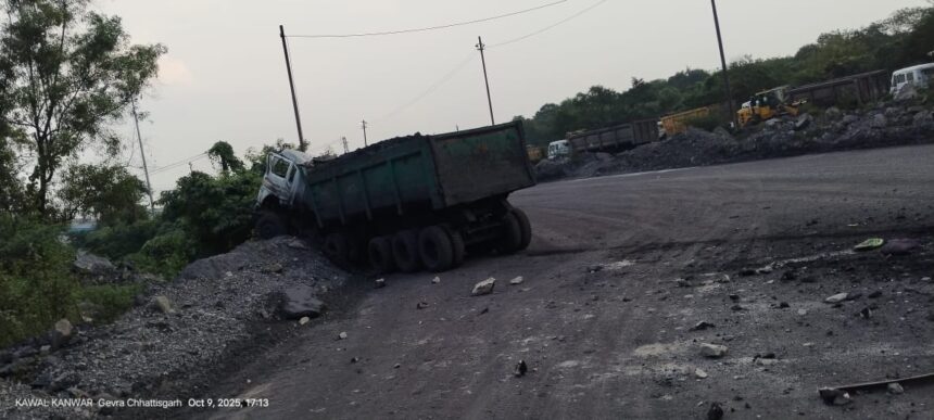 कोरबा, 09 अक्टूबर 2025। एसईसीएल की गेवरा परियोजना खदान में कोयला परिवहन कर रही गरुण ट्रांसपोर्ट कंपनी की एक रोड सेल गाड़ी गुरुवार को हादसे का शिकार हो गई। बताया गया कि वेस्ट एमटी चौक के पास वाहन तेज रफ्तार से ढलान पर उतर रहा था, तभी चालक का नियंत्रण वाहन से हट गया।