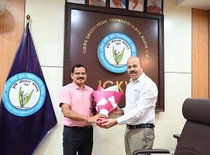 रायपुर,14अक्टूबर (वेदांत समाचार) । इंदिरा गांधी कृषि विश्वविद्यालय के नवनियुक्त कुलसचिव कपिलदेव दीपक ने आज पदभार ग्रहण किया. उन्होंने प्रभारी कुलसचिव डॉ सी पी खरे से कुलसचिव पद का प्रभार लिया. पदभार ग्रहण करने के उपरांत दीपक ने कृषि विश्वविद्यालय के कुलपति डॉ गिरीश चंदेल से सौजन्य मुलाकात की. डॉ चंदेल ने दीपक को उनके सफल कार्यकाल हेतु शुभकामनाएं दी. कपिल देव दीपक ने विश्वविद्यालय के अधिकारियों से संवाद कर विश्वविद्यालय की कार्यप्रणाली एवं गतिविधियों के बारे में जानकारी प्राप्त की. इस अवसर पर उप कुलसचिव डॉ यमन देवांगन, डॉ श्रीकांत चितले, डॉ विजय सोनी सहित विश्वविद्यालय प्रशासन के वरिष्ठ अधिकारी उपस्थित थे. उल्लेखनीय है कि कपिल देव दीपक मूलतः कृषि विभाग में संयुक्त संचालक के पद पर पदस्थ है.