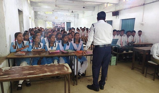 रायगढ़,14अक्टूबर (वेदांत समाचार)। पुलिस अधीक्षक दिव्यांग पटेल के दिशा निर्देशन एवं डीएसपी ट्रैफिक उत्तम प्रताप सिंह के मार्गदर्शन पर आज यातायात पुलिस रायगढ़ द्वारा शासकीय उच्चतर माध्यमिक विद्यालय कांटाहरदी में यातायात जागरूकता कार्यक्रम आयोजित किया गया। कार्यक्रम में प्रधान आरक्षक मुकेश चौहान द्वारा छात्र-छात्राओं एवं अध्यापकों को सुरक्षित यातायात नियमों की जानकारी विस्तारपूर्वक दी गई। उन्होंने कहा कि प्रत्येक नागरिक को सड़क पर चलते समय न केवल अपनी बल्कि दूसरों की सुरक्षा का भी ध्यान रखना चाहिए।