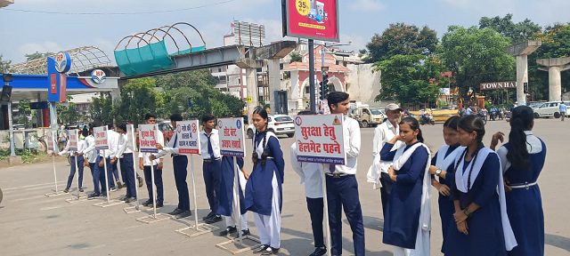 बच्चों ने हाथों में तख्तियाँ लेकर वाहन चालकों को जागरूक किया। इन तख्तियों पर “रॉन्ग साइड वाहन न चलाएं”, “हेलमेट जरूर लगाएं”, “नशे की हालत में वाहन न चलाएं”, “सीट बेल्ट लगाना न भूलें”, “बिना लाइसेंस वाहन न चलाएं”, “निर्धारित पार्किंग स्थल का ही उपयोग करें” जैसे संदेश लिखे थे।