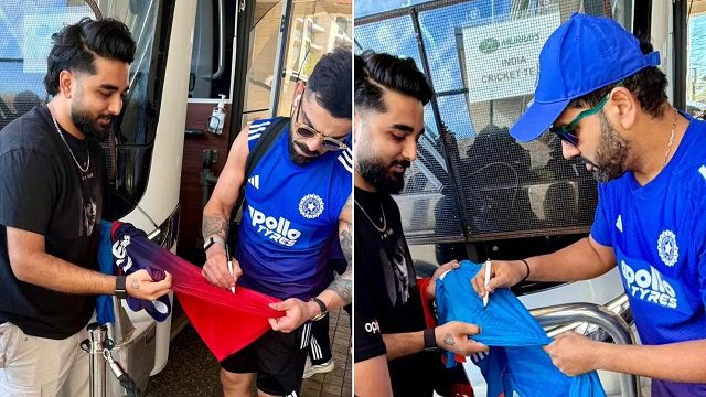 दरअसल, ऑस्ट्रेलिया में एक ऐसा दिल छू लेने वाला पल देखने को मिला. भारतीय टीम के प्रैक्टिस सेशन से पहले एक पाकिस्तानी फैन की खुशी का ठिकाना नहीं रहा, जब उसे अपने दो पसंदीदा सितारों रोहित शर्मा और विराट कोहली से ऑटोग्राफ मिला. हुआ यूं कि जब भारतीय टीम अपने होटल से प्रैक्टिस के लिए निकली, तो यह फैन टीम की बस के पास खड़ा था. इस दौरान उसने पहले विराट कोहली से रिक्वेस्ट की कि वह आरसीबी की जर्सी पर ऑटोग्राफ करें. विराट ने मुस्कुराते हुए फैन की इस इच्छा को पूरा किया और जर्सी पर अपना ऑटोग्राफ दे दिया. इसके बाद रोहित शर्मा ने भी उसी फैन को भारतीय टीम की जर्सी पर अपना ऑटोग्राफ देकर उसका दिन और खास बना दिया. बता दें, रोहित शर्मा बस में बैठ गए थे. लेकिन इस फैन के लिए बस से वापस उतरे और जर्सी पर साइन किया. जिसने हर किसी का ध्यान अपनी ओर खींच लिया.