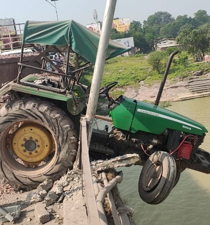 जांजगीर-चांपा,19अक्टूबर (वेदांत समाचार)। चांपा नगर से सटे गेमन पुल में आज उस समय अफरा-तफरी का माहौल बन गया जब गिट्टी से लोड एक ट्रैक्टर पुल की रेलिंग तोड़कर अंदर घुस गया। हादसे के बाद पुल पर जाम की स्थिति निर्मित हो गई। हालांकि राहत की बात यह रही कि किसी के घायल होने की खबर नहीं है।