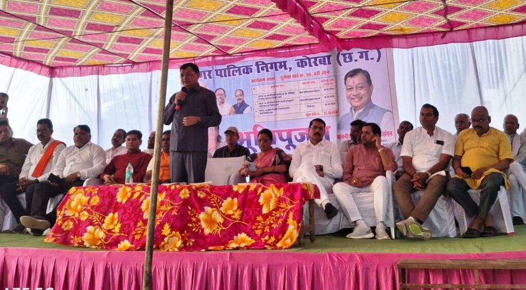 कोरबा 21 अक्टूबर 2025 – प्रदेश के उद्योग, वाणिज्य, श्रम, आबकारी व सार्वजनिक मंत्री लखनलाल देवांगन ने नगर पालिक निगम केरबा के वार्ड क्र. 54 व 55 को साढे़ 52 लाख रूपये के विकास कार्यो की सौगात दी, दर्री जोन के सुमेधा बस्ती में आयोजित भूमिपूजन कार्यक्रम के दौरान मंत्री श्री देवांगन ने 03 नये विकास कार्यो का भूमिपूजन किया तथा तत्काल कार्य प्रारंभ कर पूर्ण गुणवत्ता के साथ कार्य संपादन करते हुए समयसीमा में कार्यो को पूरा करने के निर्देश अधिकारियों को दिए।