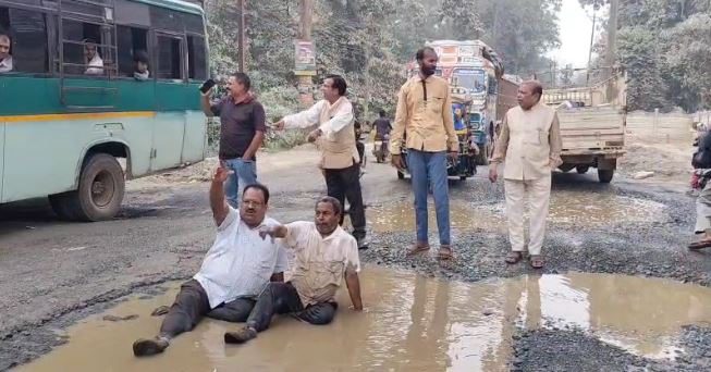 जर्जर सड़कों को लेकर अनोखा प्रदर्शन
