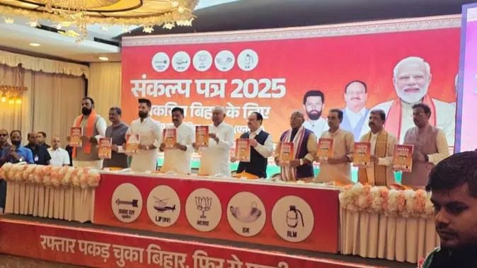 Bihar NDA Manifesto: बिहार विधानसभा चुनाव के लिए एनडीए ने अपना साझा चुनावी घोषणा पत्र जारी कर दिया है। सत्ताधारी गठबंधन की ओर से पटना के होटल मौर्य में शुक्रवार को साझा प्रेस कॉन्फ्रेंस आयोजित की गई। इस पीसी को सिर्फ डिप्टी सीएम सम्राट चौधरी ने ही संबोधित किया। एनडीए के अन्य किसी शीर्ष नेता ने कार्यक्रम को संबोधित नहीं किया। एनडीए के संकल्प पत्र में रोजगार, विकास, शिक्षा, स्वास्थ्य से जुड़े 25 प्रमुख वादे किए गए हैं।