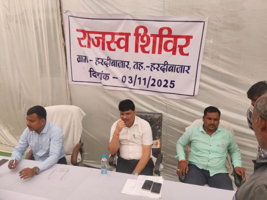 कोरबा, 3 नवम्बर। जिले के ग्रामीण अंचलों में शासन की जनकल्याणकारी योजनाओं और राजस्व से संबंधित कार्यों के त्वरित समाधान के उद्देश्य से आज हरदीबाजार ग्राम पंचायत में एक दिवसीय राजस्व शिविर का आयोजन किया गया। यह शिविर कलेक्टर अजीत बसंत के निर्देशन तथा अनुविभागीय अधिकारी राजस्व पाली के मार्गदर्शन में आयोजित किया गया।