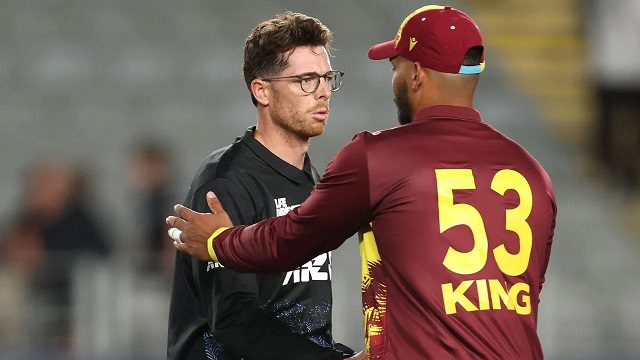 इस मुकाबले में न्यूजीलैंड ने टॉस जीतकर पहले गेंदबाजी का फैसला किया. उनकी शुरुआत भी अच्छी रही और वेस्टइंडीज ने शुरुआती 3 विकेट सिर्फ 43 रनों पर गंवा दिए. लेकिन वेस्टइंडीज के कप्तान शे होप ने एक छोर को संभाले रखा और 39 गेंदों पर 53 रनों की एक शानदार पारी खेली, जिसमें 4 चौके और 3 छक्के शामिल रहे. रोवमैन पॉवेल ने भी 33 रनों का योगदान दिया.वहीं, रोस्टन चेज ने 28 रन बनाए. जिसके चलते वेस्टइंडीज की टीम 20 ओवर में 6 विकेट के नुकसान पर 164 रन बनाने में कामयाब रही. इस दौरान न्यूजीलैंड की ओर से जैक फाउलकेस और जैकब डफी ने सबसे ज्यादा 2-2 विकेट लिए.