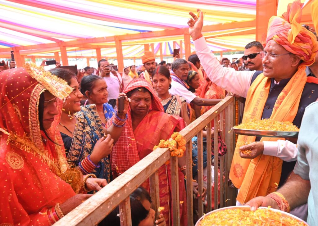 मुख्यमंत्री श्री साय ने नवविवाहित जोड़ों पर की पुष्प वर्षा