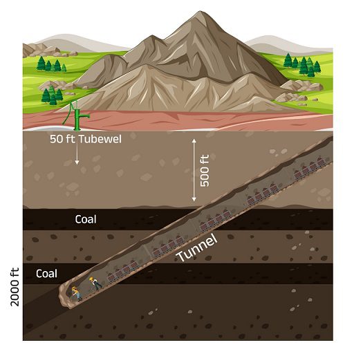 भूमिगत खनन से जलस्रोतों पर भी कोई प्रतिकूल असर नहीं पड़ता। सामान्यत: ग्रामीण क्षेत्रों में 40-50 फीट गहराई तक का भूजल उपयोग में लाया जाता है, जबकि कोयले का खनन इससे कहीं गहराई में होता है, यानि 500 फीट से भी अधिक गहराई में।