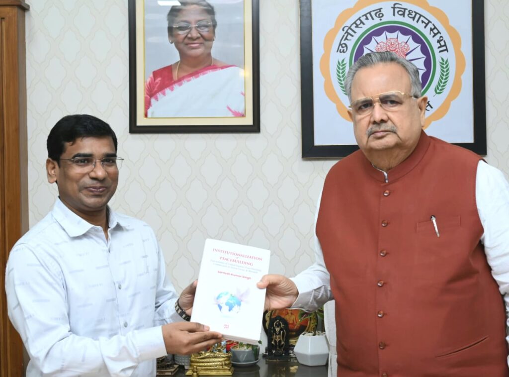 रायपुर, 08 नवंबर । पुलिस मुख्यालय में डीआईजी सीसीटीएनएस/एससीआरबी के रूप में पदस्थ आईपीएस डॉ. संतोष सिंह के संयुक्त राष्ट्र के शांति सुदृढ़ीकरण से जुड़े शोध विषय पर लिखित किताब का प्रकाशन दिल्ली के प्रतिष्ठित मानक पब्लिकेशन द्वारा किया गया है। डॉ सिंह ने माननीय मुख्यमंत्री छत्तीसगढ़ विष्णु देव साय, माननीय विधानसभा अध्यक्ष डॉ रमन सिंह और डीजीपी अरुण देव गौतम को किताब की प्रति भेंट किया।