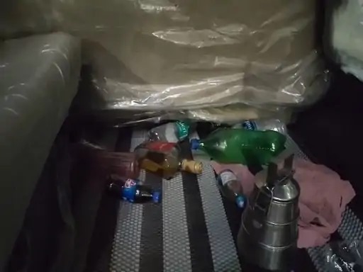 गाड़ी में मिली शराब की बोतलें और कोल्ड ड्रिंक
