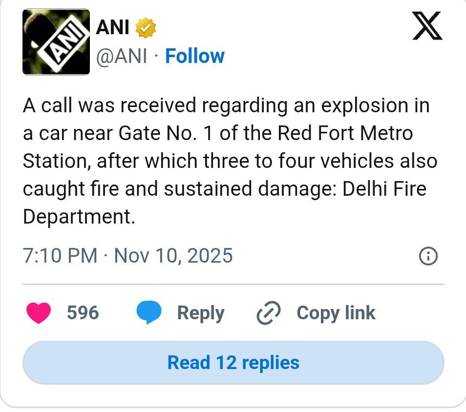 इस हादसे पर दिल्ली फायर डिपार्टमेंट ने बड़ी जानकारी दी है. विभाग की ओर से बताया गया, लाल किला मेट्रो स्टेशन के गेट नंबर-1 के पास एक कार में विस्फोट होने की सूचना मिली थी. इसके बाद 3 से 4 वाहनों में भी आग लग गई और उन्हें नुकसान पहुंचा है.