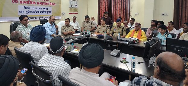 मुंगेली, 12 नवंबर 2025। जिला कलेक्टर कुंदन कुमार और पुलिस अधीक्षक भोजराम पटेल के निर्देशन में पुलिस विभाग द्वारा संचालित “पहल” अभियान के अंतर्गत पुलिस अधीक्षक कार्यालय के संवाद सभा कक्ष में सामाजिक समरसता बनाए रखने हेतु सर्व समाज प्रमुखों की बैठक आयोजित की गई। इस बैठक में मुंगेली, लोरमी और पथरिया अनुभाग से 150 से अधिक समाज प्रमुख एवं सामाजिक प्रतिनिधि उपस्थित रहे।बैठक में जिला कलेक्टर और पुलिस अधीक्षक ने समाज प्रमुखों को सामाजिक स्तर पर सामाजिक बुराइयों, साइबर ठगी, नशामुक्ति और यातायात नियमों के पालन को लेकर जागरूकता फैलाने की अपील की। अधिकारियों ने कहा कि समाज के प्रत्येक वर्ग की सहभागिता से ही एक सुरक्षित, जागरूक और समरस समाज का निर्माण संभव है।