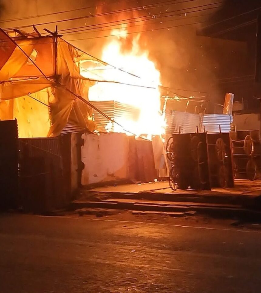 बिलासपुर,13 नवम्बर। न्यायधानी बिलासपुर के बृहस्पति बाजार सब्जी मार्केट स्थित एक फल गोदाम में बीती रात अचानक भीषण आग लग गई. आग की लपटों ने देखते ही देखते पूरे गोदाम को अपनी चपेट में ले लिया, जिससे लाखों रुपए का सामान जलकर खाक हो गया.