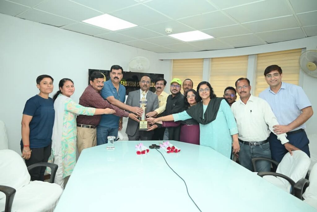 बिलासपुर, 18 फरवरी (वेदांत समाचार)। कोल इंडिया अंतर-कंपनी खेल प्रतियोगिताओं (लॉन टेनिस, कबड्डी, बैडमिंटन एवं टेबल टेनिस) में उत्कृष्ट प्रदर्शन करने वाले एसईसीएल खिलाड़ियों ने आज दिनांक 18 फरवरी 2024 को निदेशक (कार्मिक) बिरंची दास से सौजन्य भेंट कर विजेता ट्रॉफी को सर को भेंट किया। इस अवसर पर निदेशक (कार्मिक) ने टीम को बधाई एवं शुभकामनाएँ दीं तथा आगे भी इसी प्रकार उत्कृष्ट प्रदर्शन करने के लिए प्रेरित किया।