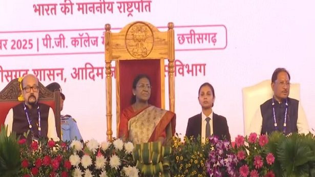 राष्ट्रपति मुर्मू वायुसेना के हेलिकॉप्टर से अंबिकापुर पहुंचीं। पीजी कॉलेज मैदान में होने वाले प्रदेश स्तरीय जनजातीय गौरव दिवस समारोह में वे बतौर मुख्य अतिथि शामिल हो रही हैं। राज्यपाल रामेन डेका इस समारोह की अध्यक्षता कर रहे हैं। मुख्यमंत्री विष्णुदेव साय, केंद्रीय जनजातीय कार्य मंत्री जुएल ओरांव, राज्यमंत्री दुर्गा दास उइके और तोखन साहू भी कार्यक्रम में मौजूद हैं।