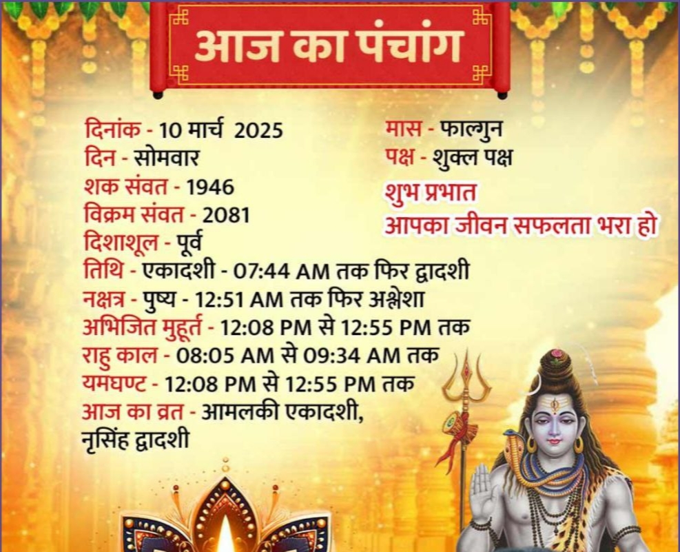 सिंह, राशि 10 मार्च 2025 राशिफलसिंह राशि वालों के लिए दिन कड़ी मेहनत और ईमानदारी से काम करने वाला रहेगा। विद्यार्थी अपने ज्ञान को बढ़ाने का कोई भी मौका हाथ से नहीं जाने देंगे। आपको अपने रिश्तेदारों से पूरा सहयोग मिलेगा। अगर आप अपनी पारिवारिक जिम्मेदारियों के प्रति लापरवाह हैं, तो आपके पिता आपसे नाराज हो सकते हैं। काम को लेकर आप अधिक तनाव में रहेंगे। कुछ नया करने का आपका प्रयास रंग लाएगा।