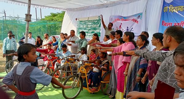 जांजगीर-चांपा,03 दिसंबर (वेदांत समाचार): अन्तर्राष्ट्रीय दिव्यांगजन दिवस 3 दिसम्बर के अवसर पर जिला प्रशासन, समाज कल्याण विभाग एवं समग्र शिक्षा के संयुक्त तत्वाधान में दिव्यांग बच्चों का खेल-कूद प्रतियोगिता, साहित्यिक व सांस्कृतिक प्रतियोगिता एवं सामग्री वितरण समारोह का आयोजन मिनी स्टेडियम पेण्ड्री भांठा जांजगीर में किया गया।