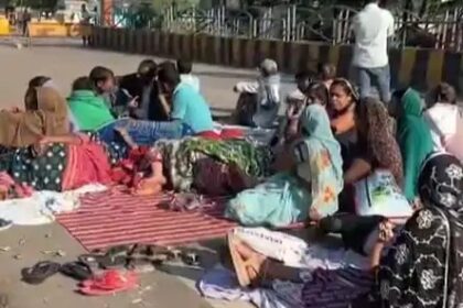 रेलवे-लाइन परियोजना के विरोध में ग्रामीणों का प्रदर्शन आंदोलन का नेतृत्व कर रहे शख्स गिरफ्तारी से बढ़ा आक्रोश, थाने के सामने धरने बैठे