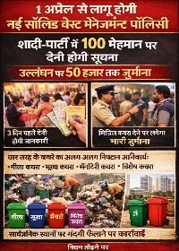 1 अप्रैल से लागू होगी नई सॉलिड वेस्ट मैनेजमेंट पॉलिसी, शादी-पार्टी में 100 मेहमान पर देनी होगी सूचना, उल्लंघन पर 50 हजार तक जुर्माना