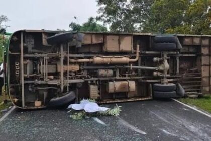 CG ACCIDENT : अनियंत्रित होकर पलटी तेज रफ्तार बस, 1 महिला यात्री की मौत, 5 की हालत गंभीर