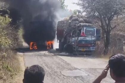 ट्रक और क्लिंकर में आमने सामने की टक्कर के बाद लगी आग, चालक जिंदा जला एक गंभीर…