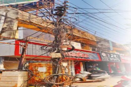 शहर के खंभों पर केबल का जाल सौ रुपए किराये के लिए सुरक्षा से खिलवाड़